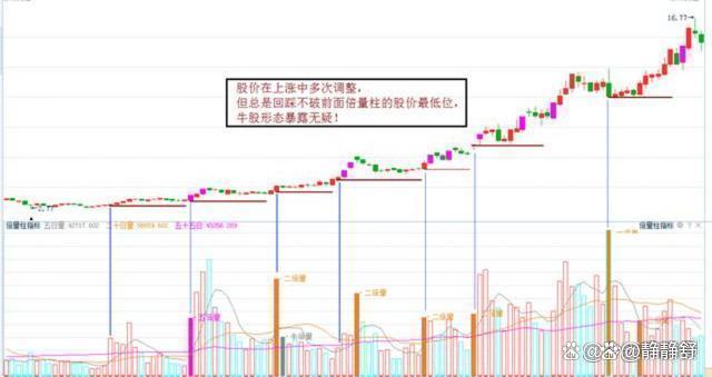 每一次拉升之后都是倍量柱的走势,而且在回调的时分构成的是倍量不穿的形状走势。