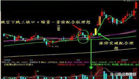 (2) 在渠道收拾结尾,主力镇压,股价急速跌落,呈量减价跌趋势。
