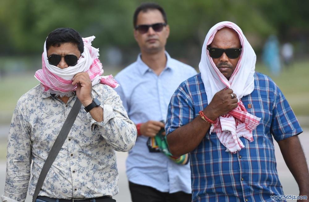 2023年5月23日,在印度新德里,行人用头巾遮蔽阳光避暑。新华社发(贾韦德·达尔摄)