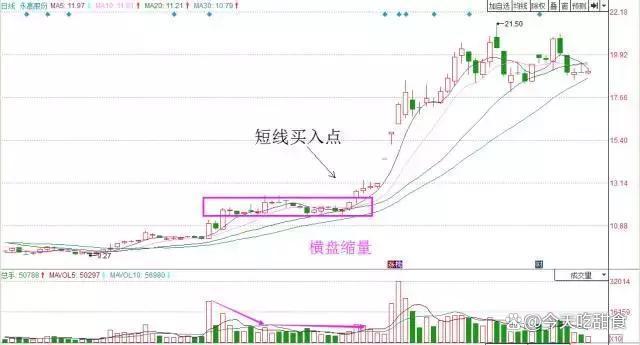 此时成交量逐步萎缩到一个较低的位置,股价也小幅下跌至一个相对低点,这时应是明确的买入时机,当成交量重新开始放大,将展开又一浪升势。