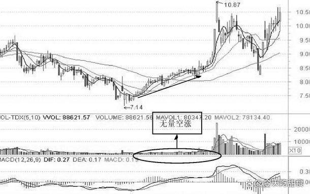 另外就是庄家主力高度控盘的时候,几乎无须用抛盘来拉升股价,也会出现无量空涨的现象;